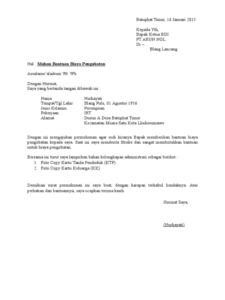 Contoh surat sumbangan sukarela untuk orang sakit Permohonan Bantuan Dana Orang Sakit